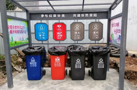 6、接下來,只需要將各分類垃圾桶依次放進垃圾分類亭內(nèi),整個安裝步驟才算完成。